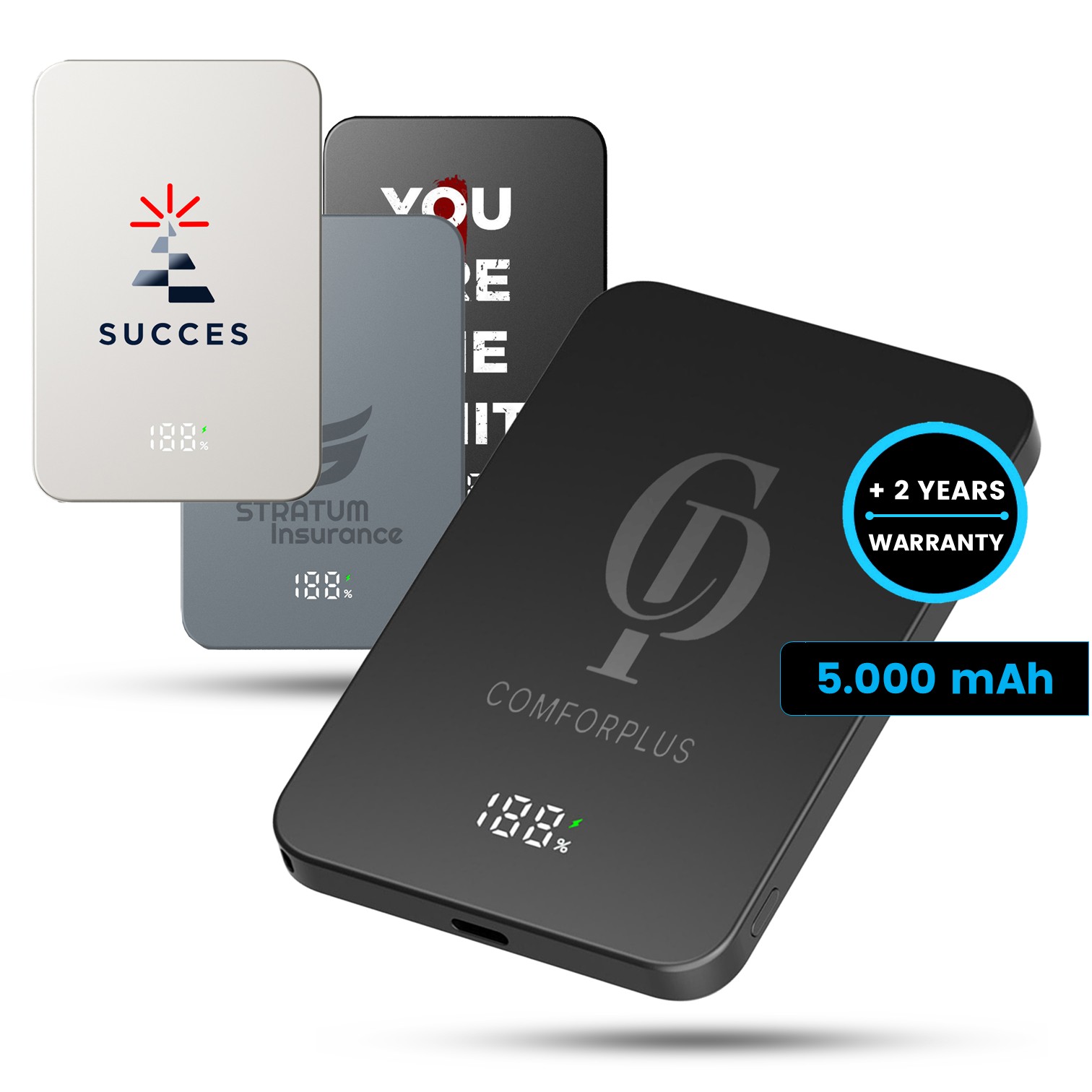 Magnetická power banka PowerGo s kapacitou 5000 mAh je kompaktním a elegantním řešením pro rychlé dobití energie kdykoliv během dne. Podporuje bezdrátové nabíjení s výkonem až 15 W pro zařízení kompatibilní se standardem Qi a zároveň nabízí výkonné kabelové nabíjení přes USB-C s podporou PD až 20 W, díky čemuž zvládne efektivně nabíjet moderní smartphony i další přenosná zařízení. Magnetické uchycení (MagSafe kompatibilní) zajišťuje přesné a stabilní přichycení k telefonu, takže power banka drží pevně na místě. LED indikátor poskytuje okamžitou informaci o stavu kapacity. Lehká konstrukce z plastu v kovovém vzhledu a čistý, minimalistický design dělají z modelu PowerGo ideálního společníka na cesty, do města i do práce. Zároveň nabízí dostatek prostoru pro logo nebo potisk, což z ní činí atraktivní a praktický reklamní předmět s každodenním využitím.