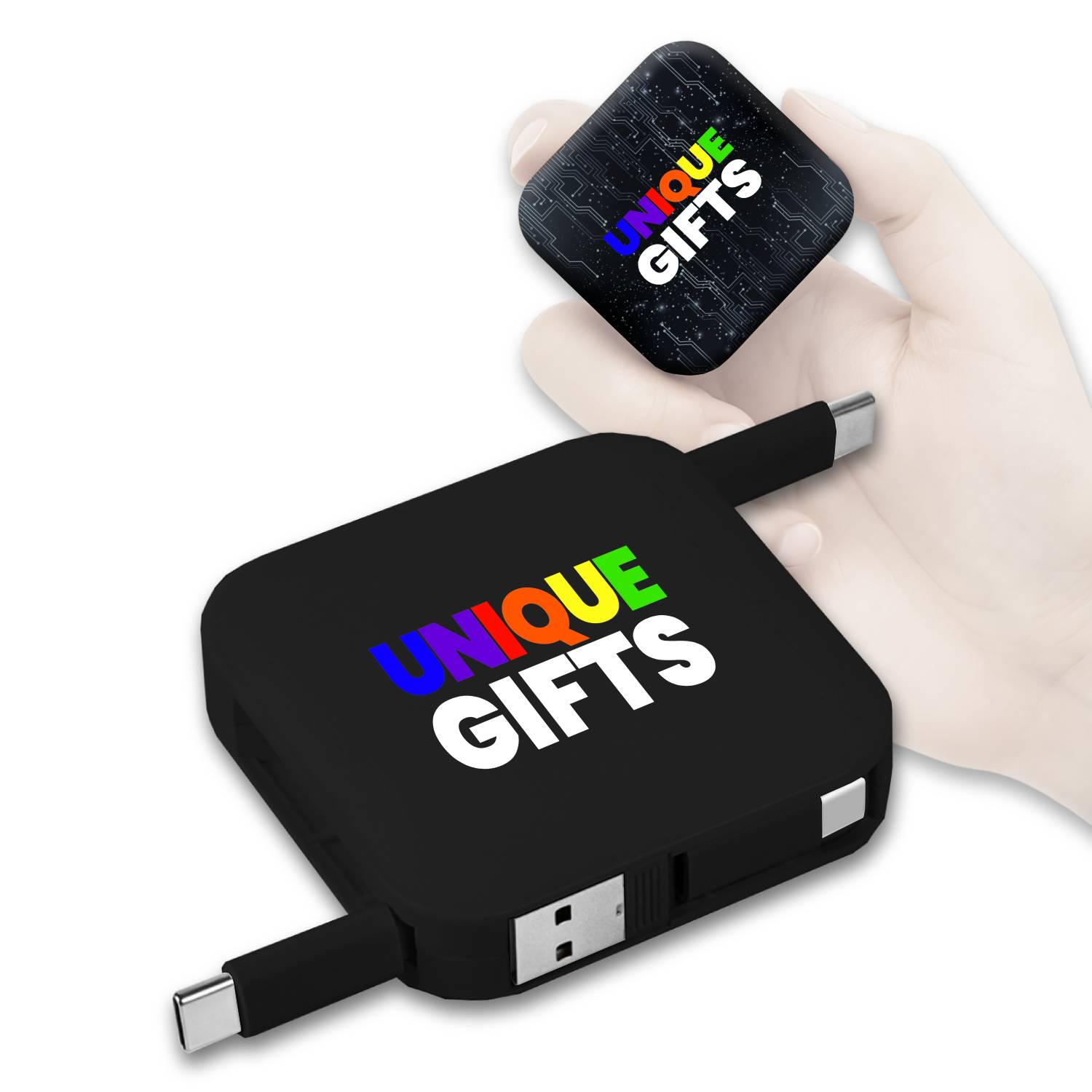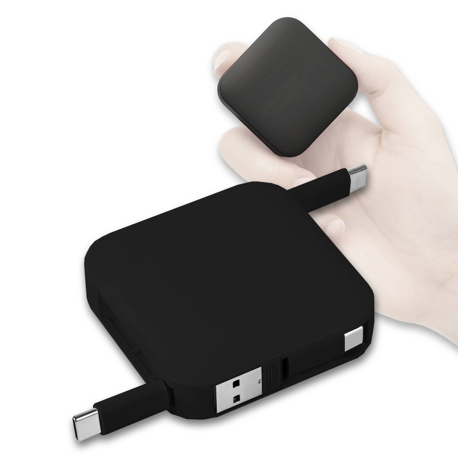Tento 60W datový a nabíjecí kabel 4 v 1 se stojánkem a samonavíjecím mechanismem je praktickým řešením pro každodenní práci, cestování i moderní kancelář. V jednom kompaktním těle kombinuje USB-A a USB-C vstup s výstupy USB-C a Lightning, takže pohodlně nabijete i synchronizujete většinu běžně používaných zařízení bez nutnosti nosit více kabelů. Podpora výkonu až 60 W umožňuje rychlé nabíjení notebooků, tabletů i smartphonů, zatímco stabilní přenos dat zajišťuje efektivní práci bez zdržování. Integrovaný výsuvný stojánek promění kabel v praktický držák telefonu, ideální pro videohovory, sledování obsahu nebo práci na cestách. Samonavíjecí konstrukce udržuje kabel vždy uklizený a chráněný. Díky hladké ploše je produkt ideální pro branding pomocí potisku nebo loga, což z něj činí atraktivní a funkční reklamní předmět pro firmy, které chtějí spojit užitečnost s viditelnou prezentací značky.