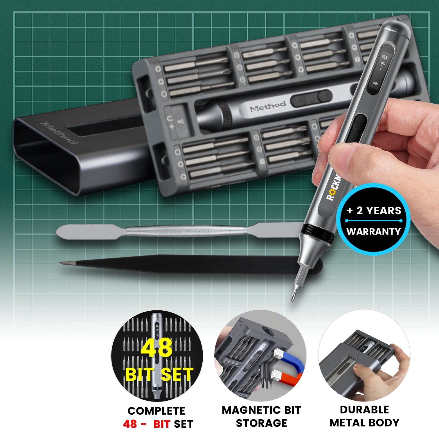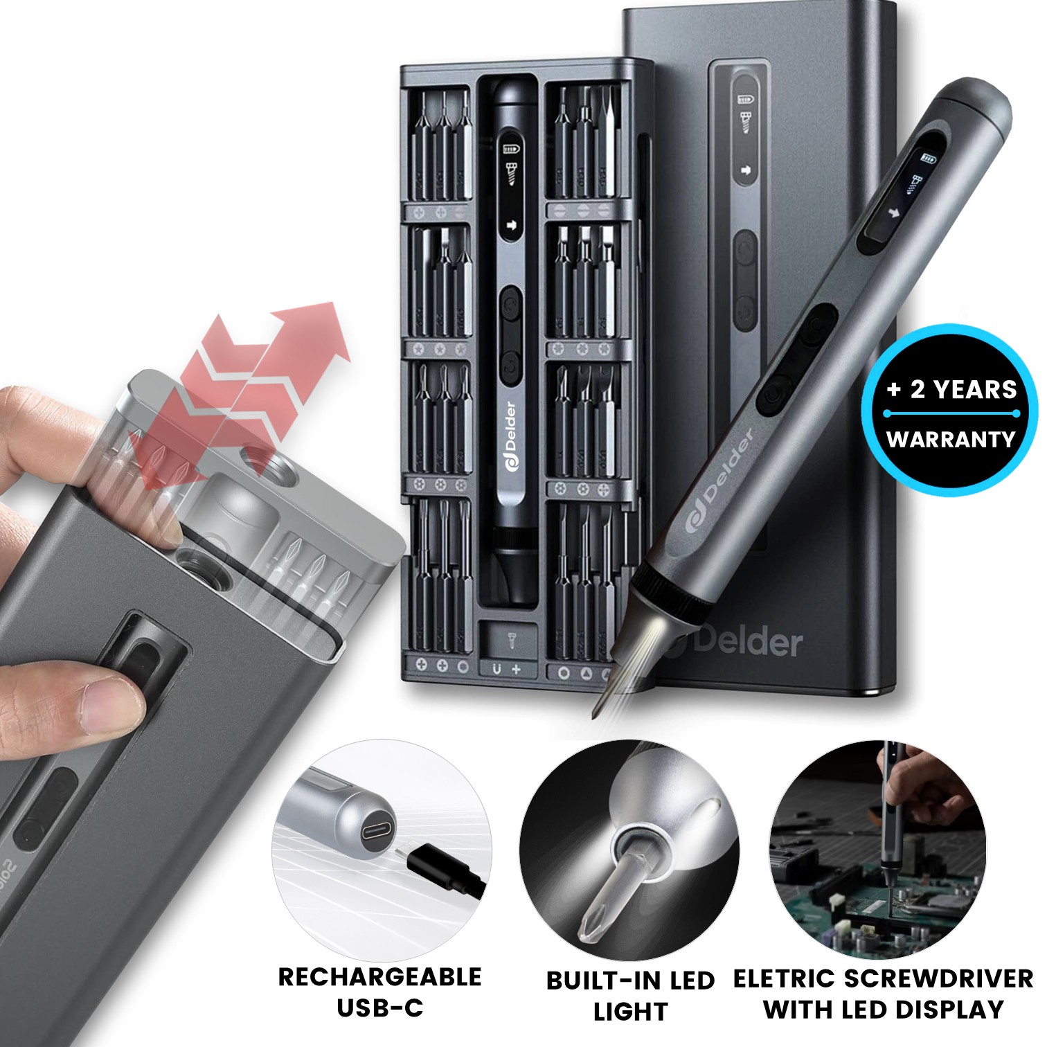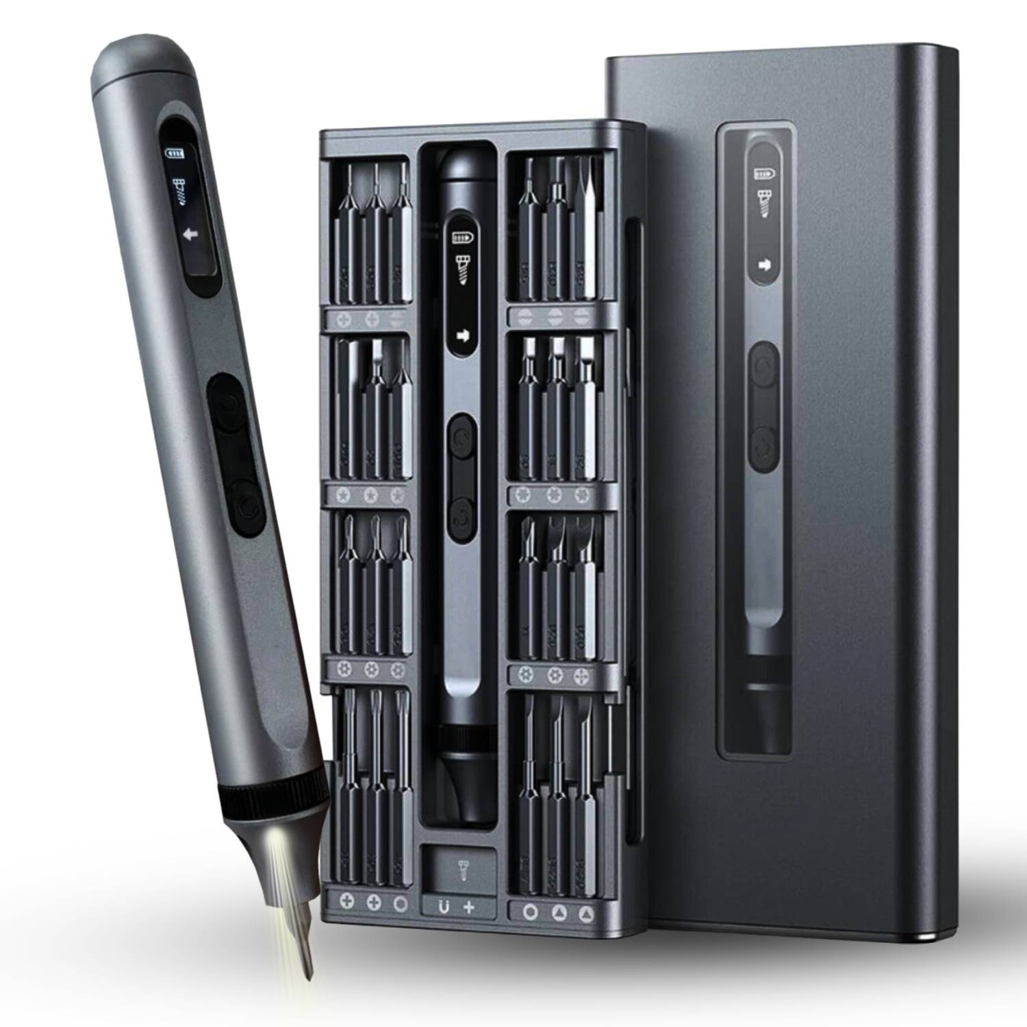 Tento precizní elektrický šroubovák v elegantním hliníkovém těle přináší dokonalou kombinaci síly, přesnosti a komfortu při každé opravě. Díky vestavěnému LED světlu perfektně uvidíte i na ty nejmenší detaily a magnetický nástavec pevně drží každý bit. Nabíjení přes moderní USB-C konektor zajistí, že budete mít vždy dostatek energie, a přehledný indikátor vám ukáže stav baterie. V sadě najdete 48 precizních bitů z odolné oceli, které pokrývají všechny běžné typy šroubků – ideální pro opravy elektroniky, brýlí, hodinek, dronů či počítačů. Ergonomický tvar šroubováku padne pohodlně do ruky a jemný elektrický pohon šetří čas i vaše prsty. Spojení preciznosti, výkonu a elegance dělá z tohoto nářadí ideální dárek pro všechny, kdo ocení profesionální kvalitu v kompaktním provedení.