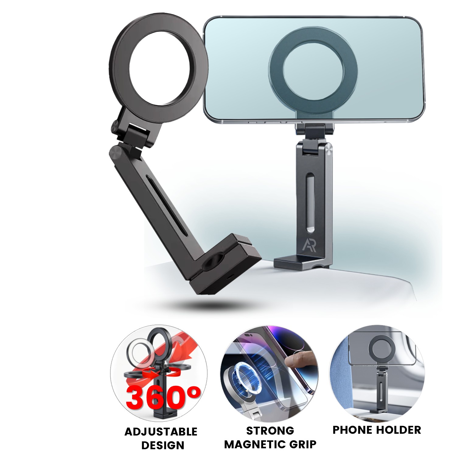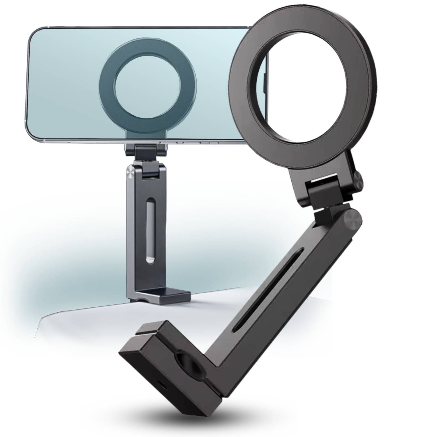 Univerzální kovový magnetický držák telefonu je elegantní a praktické řešení pro každodenní použití doma, v kanceláři i na cestách. Díky silnému magnetu a kompatibilitě s MagSafe drží telefon pevně na místě a umožňuje pohodlné sledování videí, videohovory nebo navigaci. Otočný kloub s rozsahem 360° a sklopná konstrukce poskytují maximální flexibilitu při nastavení ideálního úhlu, zatímco pevné kovové tělo zajišťuje dlouhou životnost a prémiový vzhled. Držák lze snadno připevnit na stůl, polici nebo jiný povrch a po složení se vejde i do kapsy či tašky. Ideální pro ty, kteří chtějí spojit styl, praktičnost a stabilní uchycení telefonu.