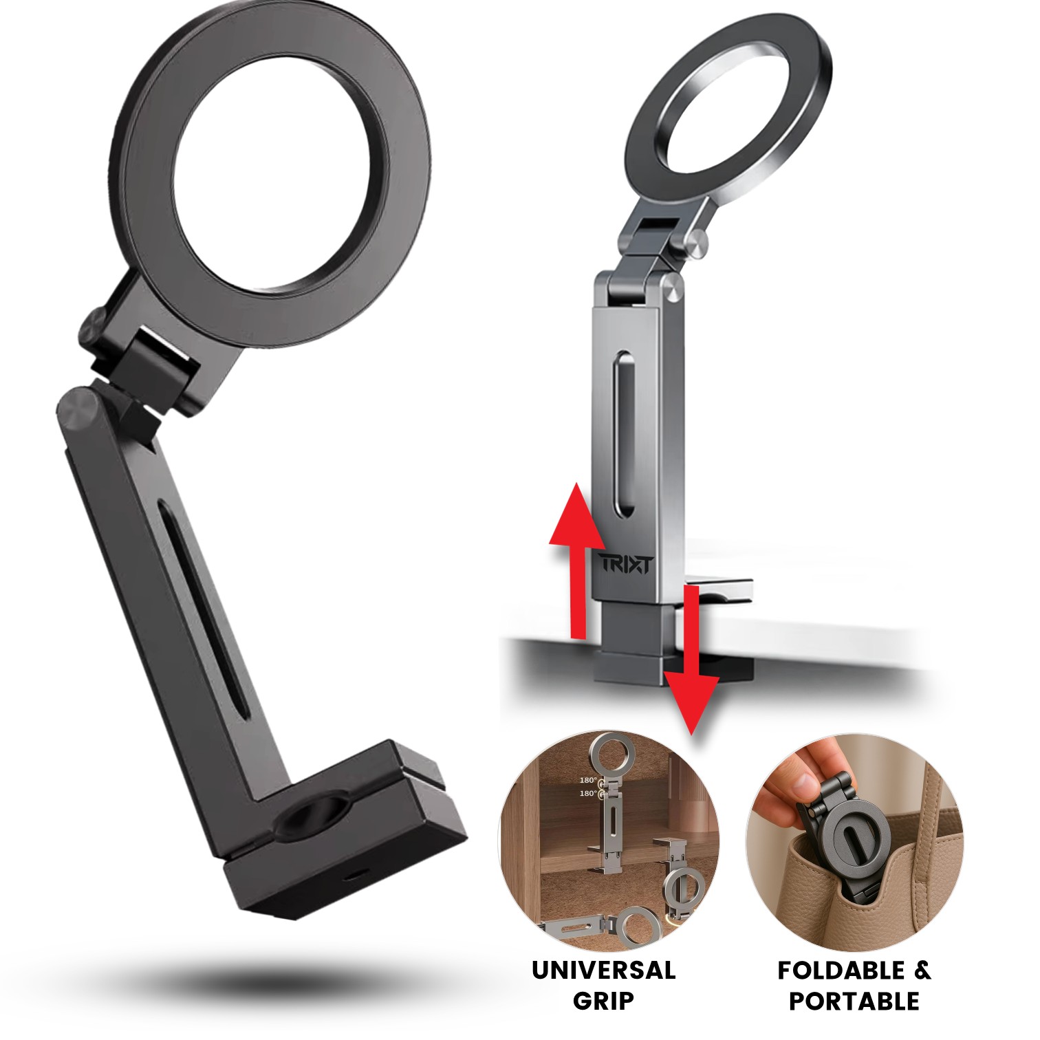 Univerzální plastový magnetický držák telefonu je lehké a praktické řešení pro každodenní použití doma, v kanceláři i na cestách. Díky silnému magnetu a kompatibilitě s MagSafe udrží telefon pevně na místě a umožní pohodlné sledování videí, videohovory nebo navigaci. Otočný kloub s rozsahem 360° a sklopná konstrukce poskytují maximální flexibilitu při nastavení ideálního úhlu, zatímco odolné plastové tělo zajišťuje nízkou hmotnost a snadnou přenositelnost. Držák lze jednoduše připevnit na stůl, polici nebo jiný povrch a po složení se bez problémů vejde i do kapsy či tašky. Ideální volba pro ty, kteří hledají kombinaci praktičnosti, mobility a spolehlivého uchycení telefonu.
