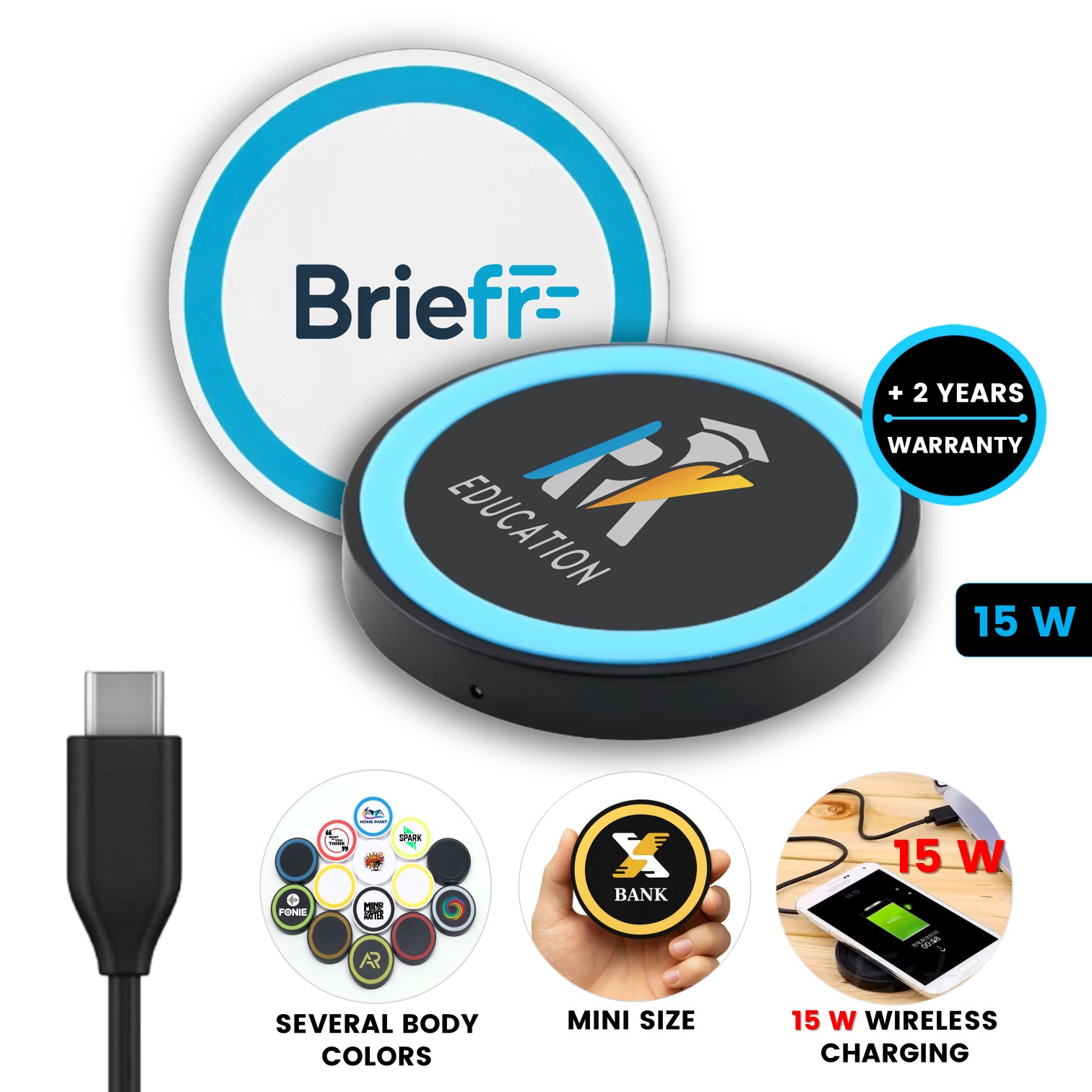 Elegantní a lehká bezdrátová nabíječka s výkonem 15 W přináší pohodlné nabíjení bez kabelů pro moderní každodenní život. Kompaktní tvar a protiskluzová plocha zaručují stabilní umístění telefonu během nabíjení. Díky vstupu USB-C a výkonu až 15 W je kompatibilní s většinou chytrých telefonů s podporou Qi, včetně iPhone a Android zařízení. Ideální pro firemní branding či reklamní použití – hladká horní plocha umožňuje umístění loga formou potisku. Perfektní doplněk na pracovní stůl, do kanceláře i na cesty.