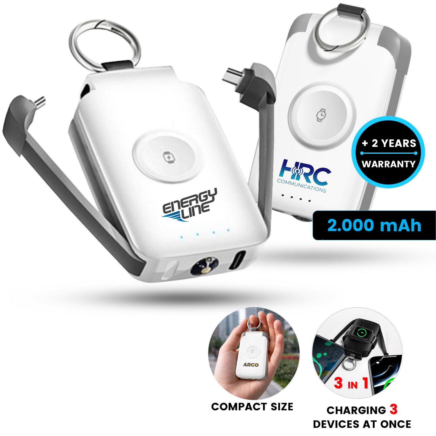 Pohotovostní power banka CHARGEGO je kompaktní a praktický pomocník, kterého máte vždy po ruce díky integrovanému oku pro zavěšení na klíče. I přes své malé rozměry nabízí překvapivě široké možnosti využití v každodenních i krizových situacích. Vestavěné kabely USB-C a Apple Lightning umožňují okamžité nabíjení chytrých telefonů, tabletů a dalších elektronických zařízení bez nutnosti nosit další příslušenství. Součástí je také bezdrátová nabíječka pro Apple Watch s výkonem 2,5 W, ideální pro rychlé dobití hodinek na cestách. Praktická LED svítilna zvyšuje využitelnost power banky při slabém osvětlení nebo v nouzových situacích. Přehledný LED indikátor informuje o stavu kapacity a režimu nabíjení. Díky jednoduchému, odolnému plastovému provedení a promyšlené konstrukci je CHARGEGO ideální volbou pro aktivní uživatele, cestovatele i jako funkční reklamní předmět s možností brandingu.