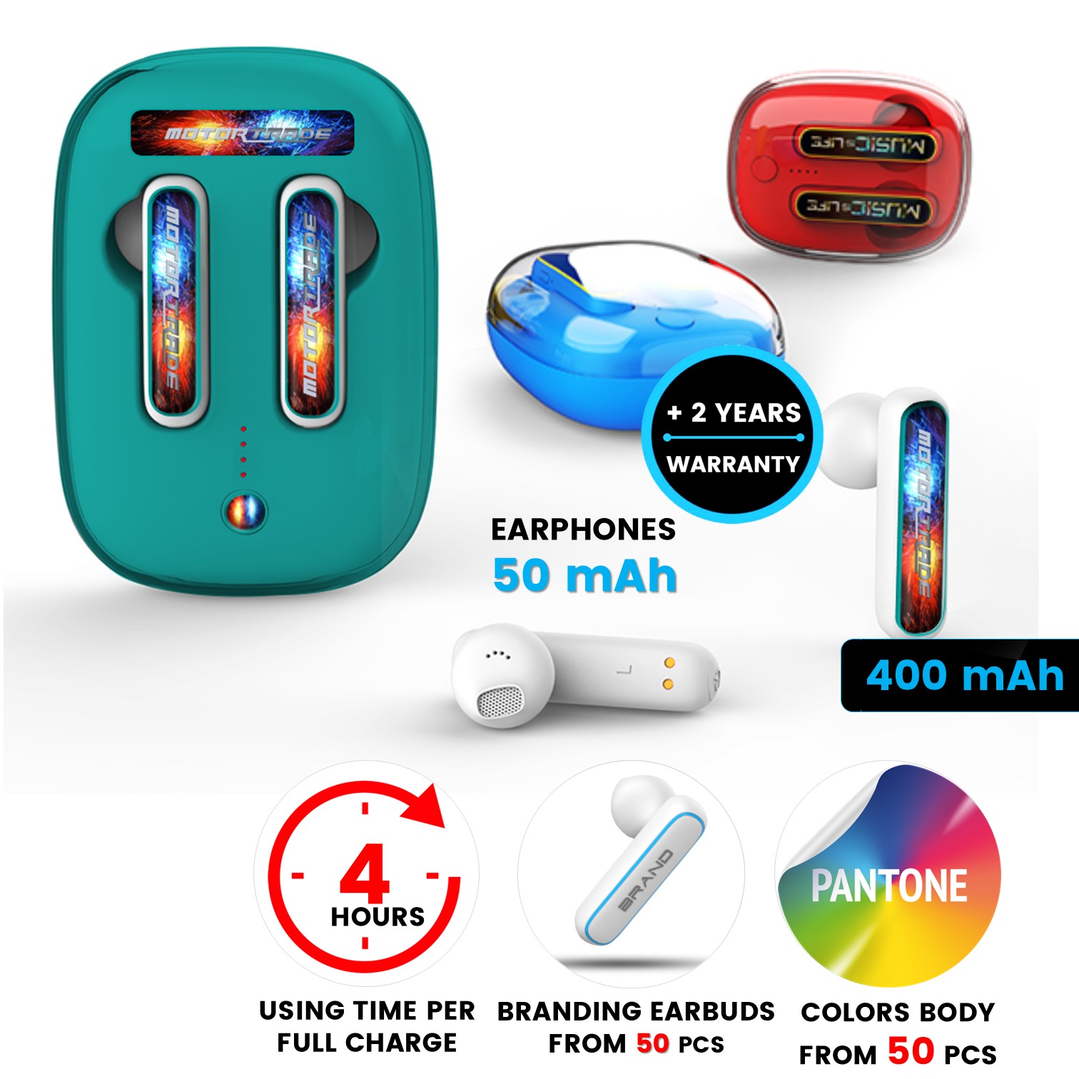 Bezdrátová sluchátka jsou velice trendy a praktickou technologickou záležitostí. Tato Bluetooth sluchátka jsou dodávána v praktické dobíjecí krabičce. Sluchátka tak jednoduše nabijete pouhým vložením do krabičky. Během poslechu hudby nepotřebujete žádné kabely. Celý set navíc vypadá velmi elegantně. Můžete si zvolit libovolnou barvu a design celého setu, aby dokonale ladil s vašimi firemními barvami. Sluchátka podporují Bluetooth 5.4