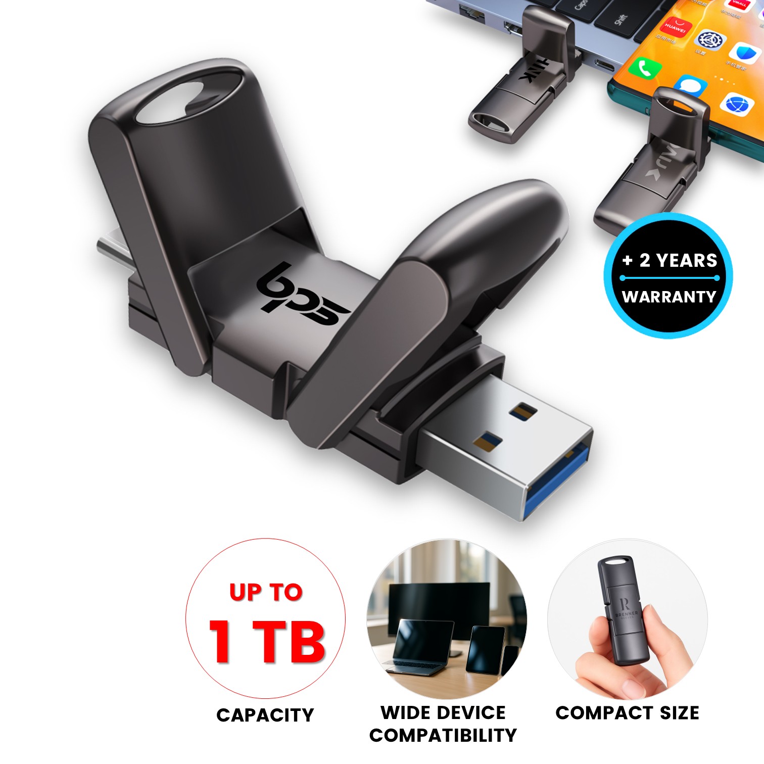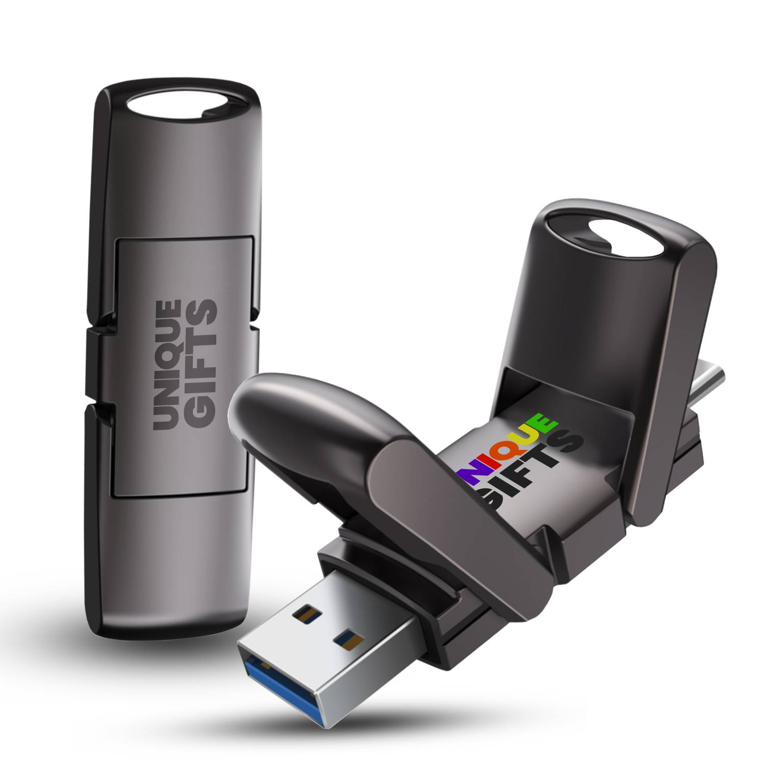Tento vysokorychlostní SSD disk nové generace kombinuje špičkový výkon, moderní design a maximální praktičnost v jednom kompaktním kovovém těle. Díky dvojitému rozhraní USB-A a USB-C jej snadno připojíte k notebookům, počítačům, telefonům i tabletům, což z něj činí ideální nástroj pro profesionály i běžné uživatele. Solid-state konstrukce a čip S+ zajišťují extrémně rychlý přenos dat s rychlostí čtení až 520 MB/s a zápisu přes 400 MB/s, takže velké soubory, fotografie či videa zpracujete během okamžiku. Tělo ze zinkové slitiny je odolné, elegantní a příjemné na dotek. Překlápěcí konstrukce chrání konektory při nošení a zajišťuje pohodlné používání. Flash disk nabízí spolehlivý výkon, vysokou kapacitu až 1 TB a atraktivní prostor pro branding, díky čemuž se stává prémiovým firemním dárkem i profesionálním pracovním nástrojem.