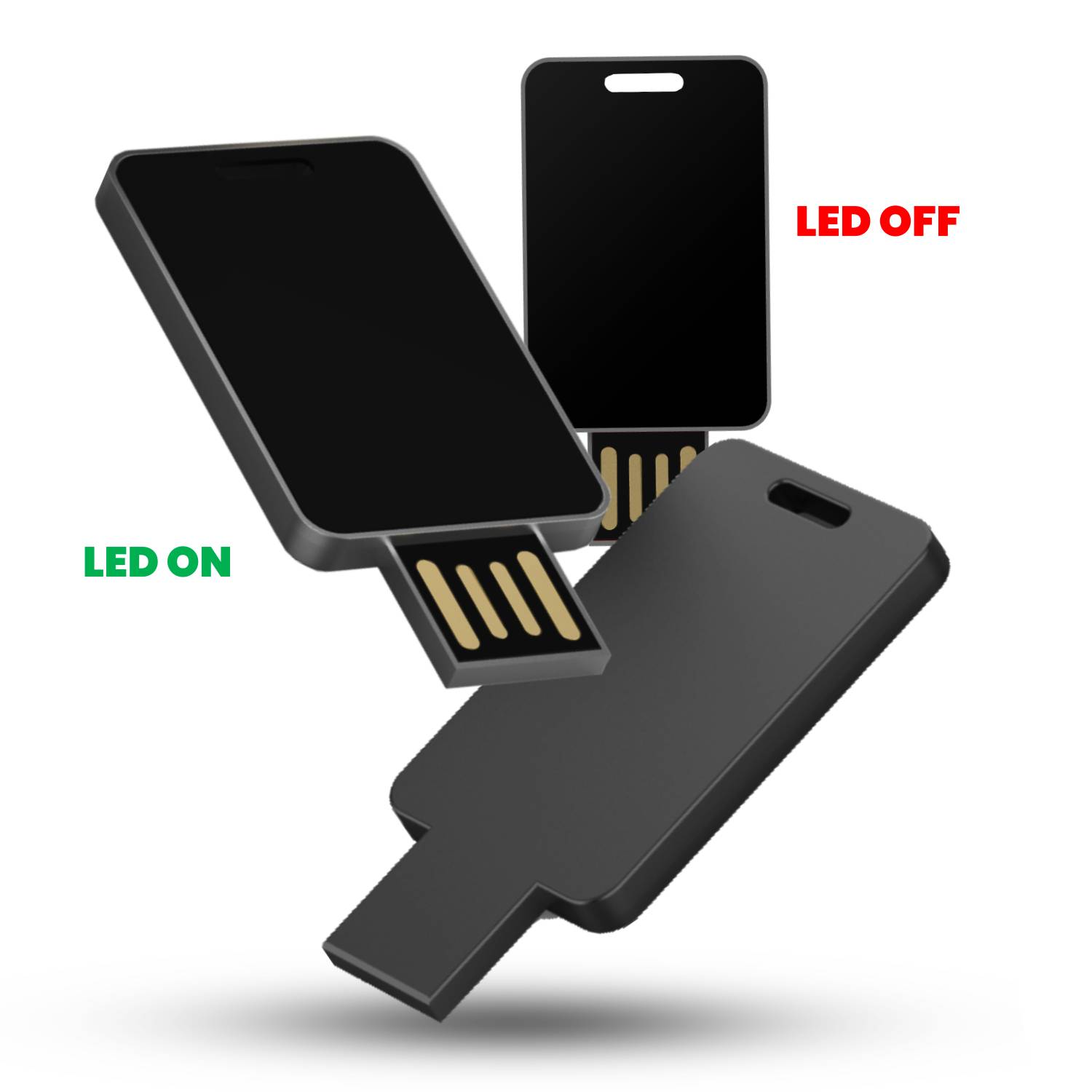 Ultratenká kovová USB flash karta vyniká elegantním minimalistickým designem a výrazným LED podsvícením loga, které okamžitě upoutá pozornost. Díky tloušťce pouhých 3,4 mm se snadno vejde do peněženky, na klíče nebo k notebooku, přitom si zachovává odolnou kovovou konstrukci s dlouhou životností. Přední strana nabízí efektní LED logo ve čtyřech barvách, zatímco zadní část lze doplnit laserem nebo plnobarevným CMYK potiskem. Je to ideální firemní dárek pro značky, které chtějí zaujmout technologickým stylem a prémiovým provedením. Kombinuje praktické úložiště s poutavým světelným efektem, díky němuž vynikne při každém použití.