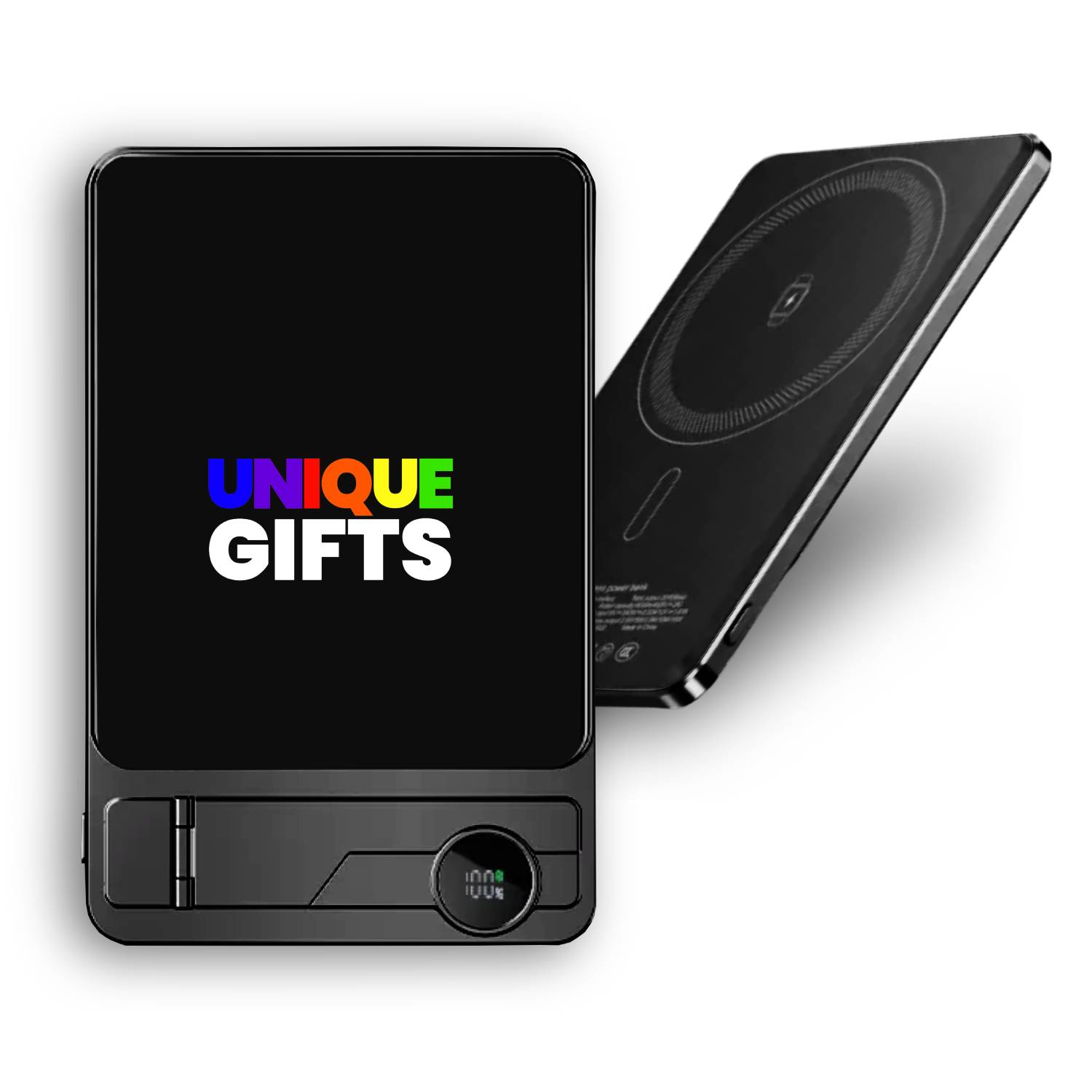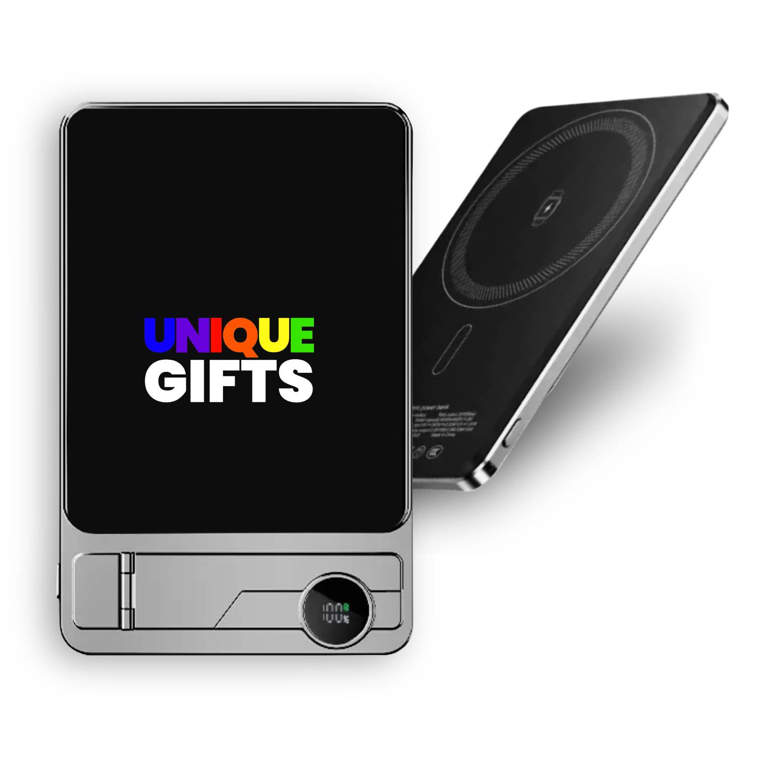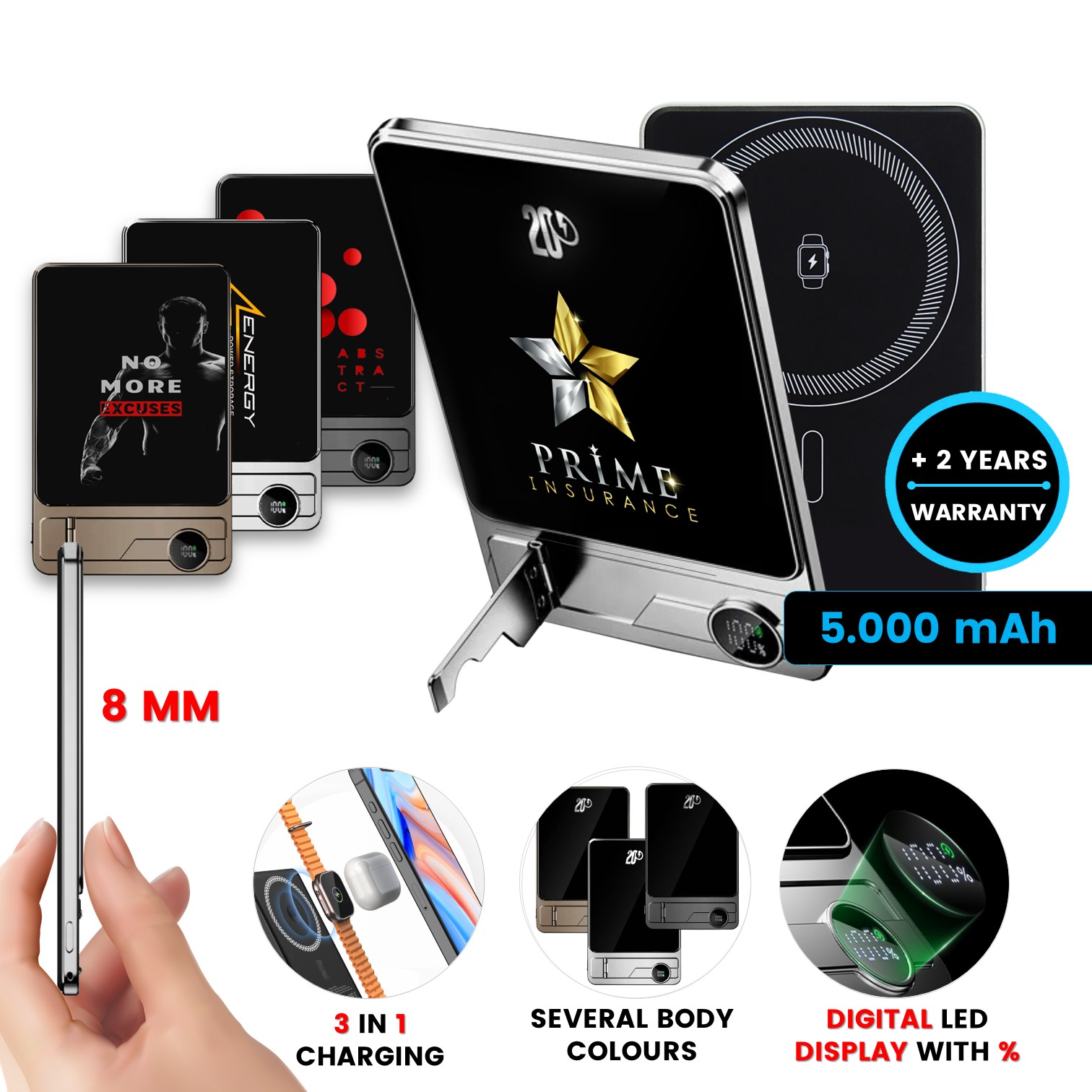 Nechte kabely doma a nabijte vše, co potřebujete – elegantně, rychle a stylově. Power banka QUANTUM nabízí bezdrátové nabíjení o výkonu 15 W, podporu PD 20 W přes USB-C a ultratenké hliníkové tělo, které perfektně přilne k telefonu díky silným magnetům. Integrovaný kovový stojánek umožní pohodlné sledování videí či videohovory, zatímco digitální displej vás informuje o stavu baterie. Díky obousměrnému napájení zvládne QUANTUM současně nabíjet i sama čerpat energii, a to bez kompromisů. Ideální pro uživatele iPhonů, Apple Watch nebo bezdrátových sluchátek. Nabízí výkon, praktičnost i prostor pro branding v dokonale kompaktním designu.