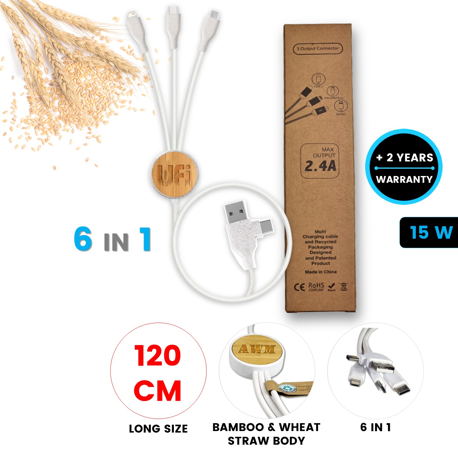 Současné trendy vedou ke stále většímu využívání přírodních nebo aspoň ekologicky rozložitelných materiálů při výrobě elektroniky. Tento kabel je vyroben z kombinace kompostovatelného plastu, pšeničné a kukuřičné slámy a bambusu, navíc jej dostanete zabalen v krabičce z recyklovaného papíru. Kabel má k tomu i skvělé technické vlastnosti a mnoho možností konektivity - k dobíjení jej mohou používat majitelé mobilních telefonů se všemi v současnosti používanými konektory - micro USB, USB-C (Type-C) (i na výstupu adaptéru) nebo Lightning - a k dispozici máte i patentovaný oboustranný konektor USB-A. Kabel sám je vyroben z kvalitních měděných vodičů o tloušťce 24 AWG, chráněných silnou vrstvou elastického kompozitu.