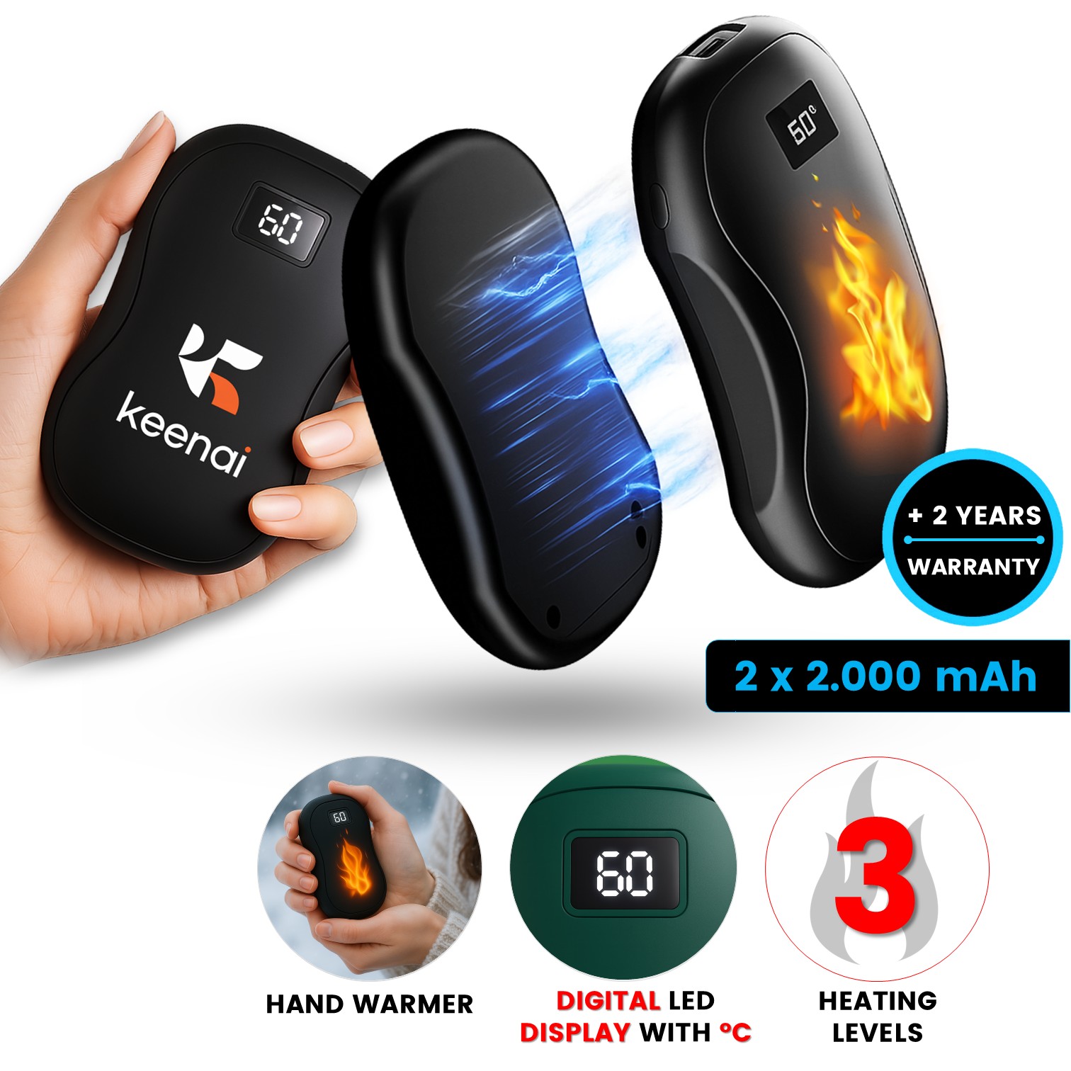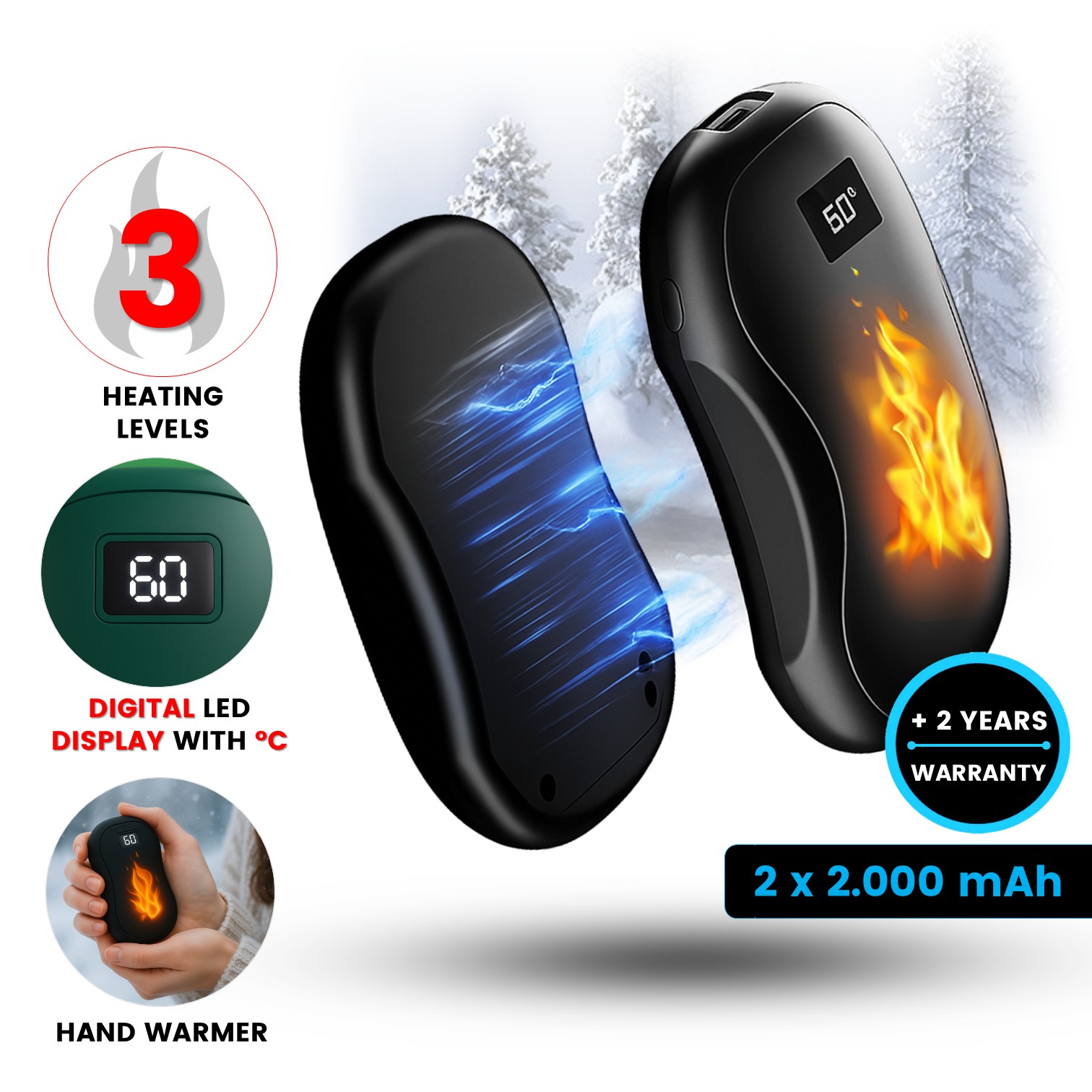 Tento inovativní dvoudílný set kombinuje praktické nabíjení a příjemné teplo v elegantním magnetickém provedení. Každá z obou jednotek funguje jako samostatná power banka i ohřívač rukou, takže si můžete vybrat, zda je budete používat jednotlivě, nebo je spojíte do jednoho kompaktního celku. Kapacita 4000 mAh (2000 mAh na kus) nabízí rychlou pomoc při dobití telefonu či drobné elektroniky. Ohřev je k dispozici ve třech teplotních úrovních – 40, 50 a 60 °C – takže si snadno navolíte přesnou intenzitu podle aktuálních podmínek. Digitální displej zobrazí nastavenou teplotu, zaoblená strana pohodlně padne do dlaně a plochá magnetická plocha umožňuje pevné spojení obou částí. Set je ideální pro cestovatele, sportovce, kurýry i všechny, kteří potřebují mít teplo a energii kdykoli po ruce.