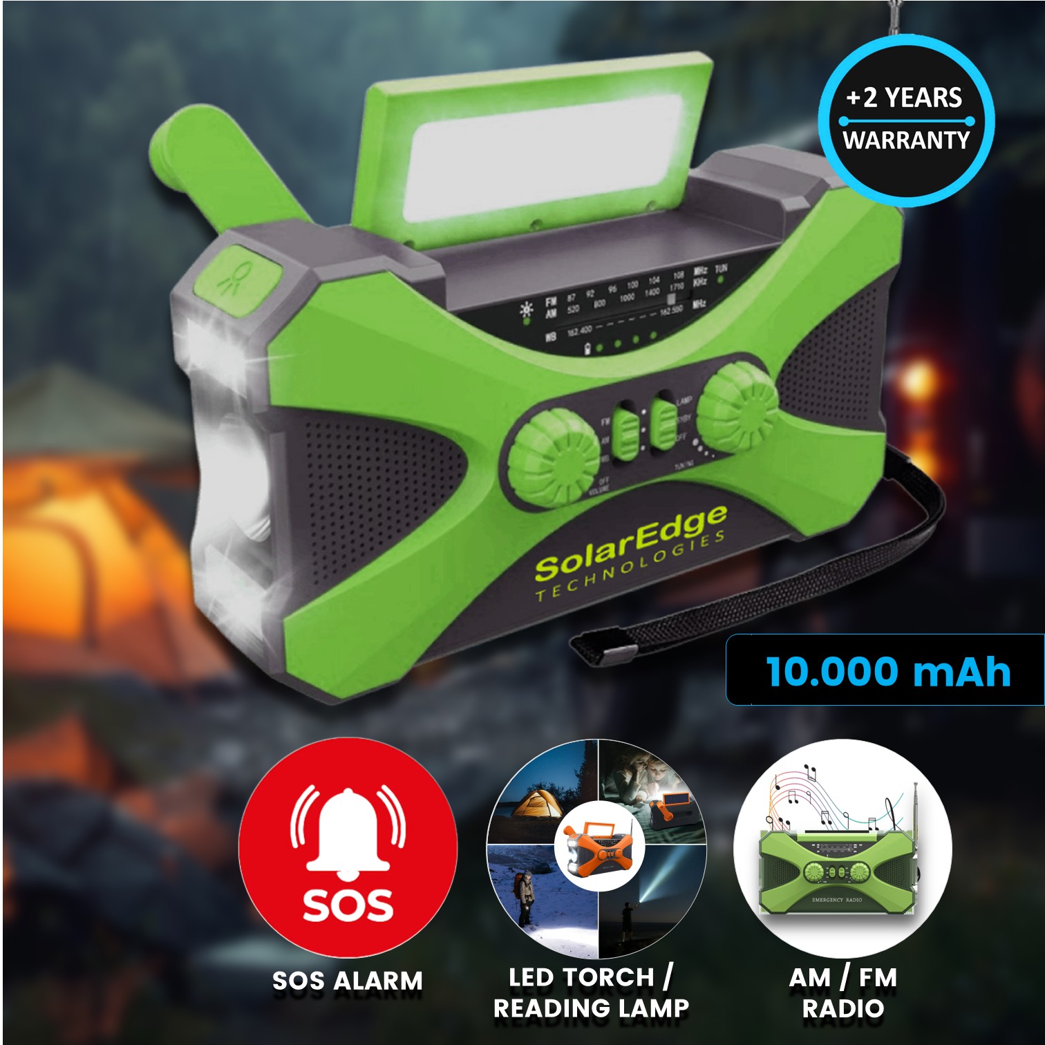 Výborná pomůcka pro všechny turisty, chataře, kempaře, trempy a milovníky expedic do divočiny. Nabízíme vodotěsné tranzistorové FM rádio, kombinované s powerbankou, svítilnou a čtecí lampou, které můžete dobíjet pomocí dynama s ruční klikou i s funkcí částečného dobíjení přes solární panel. Nejste závislí na elektrické síti a přesto si můžete dobít telefon, posvítit na mapu nebo pod nohy a z rádia si kromě oblíbených melodií nebo mluveného slova poslechnout i aktuální předpověď počasí. Powerbanka dokáže dobít baterii mobilního telefonu a ještě v ní zbude dostatek energie pro několik hodin poslechu či osvětlení. Tento multifunkční výrobek by nemě chybět ve výbavě žádného tuláka přírodou. Na pouzdro výrobku můžete nechat natisknout své reklamní sdělení a můžeme jej dodat v několika barvách silikonových částí.