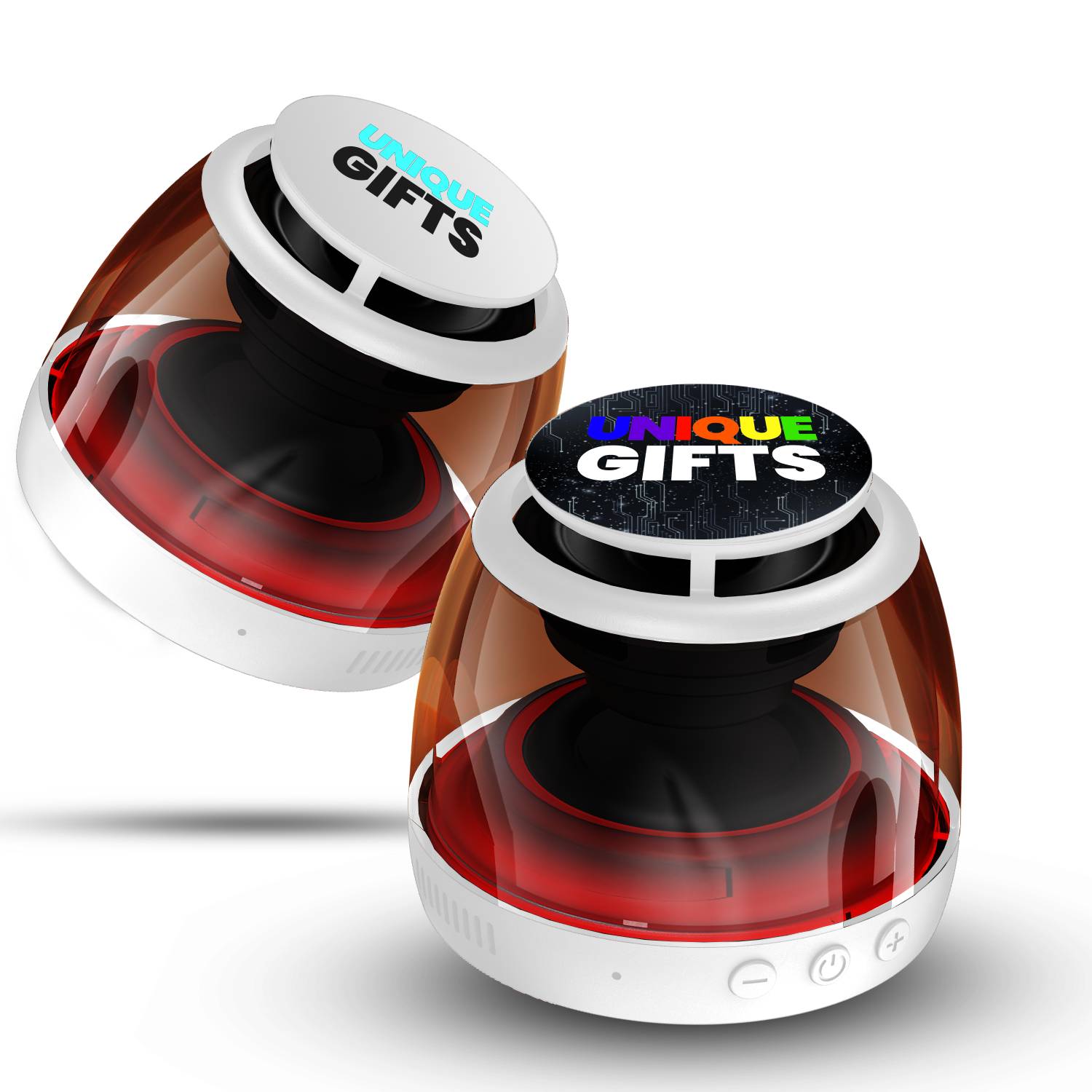 Tento kompaktní přenosný reproduktor s vestavěným zesilovačem a bezdrátovým připojením k telefonu nebo tabletu přináší skvělý zvuk a praktické funkce v jednom. Díky výkonnému 5W širokopásmovému reproduktoru a frekvenčnímu rozsahu 50 Hz – 18 kHz si užijete čistý a vyvážený zvuk při poslechu hudby, podcastů nebo telefonních hovorů (integrovaný mikrofon). Reproduktor podporuje Game Mode, který zajišťuje rychlejší odezvu pro plynulejší zážitek při hraní her nebo sledování videí. S moderním Bluetooth 5.3 nabízí stabilní připojení s dosahem až 10 metrů. MagSafe kompatibilní magnetické uchycení umožňuje snadné připevnění k telefonu, díky čemuž může reproduktor sloužit také jako stojánek pro pohodlné sledování obsahu. Reproduktor je vybaven RGB LED podsvícením, které nabízí různé světelné režimy. Může svítit i jednou konstatní barvou. Díky celoplošnému CMYK potisku lze reproduktor opatřit libovolnou grafikou, logem nebo reklamním motivem. K dispozici je také možnost výroby ve vlastních barvách, což z něj dělá skvělý propagační nebo firemní dárek.