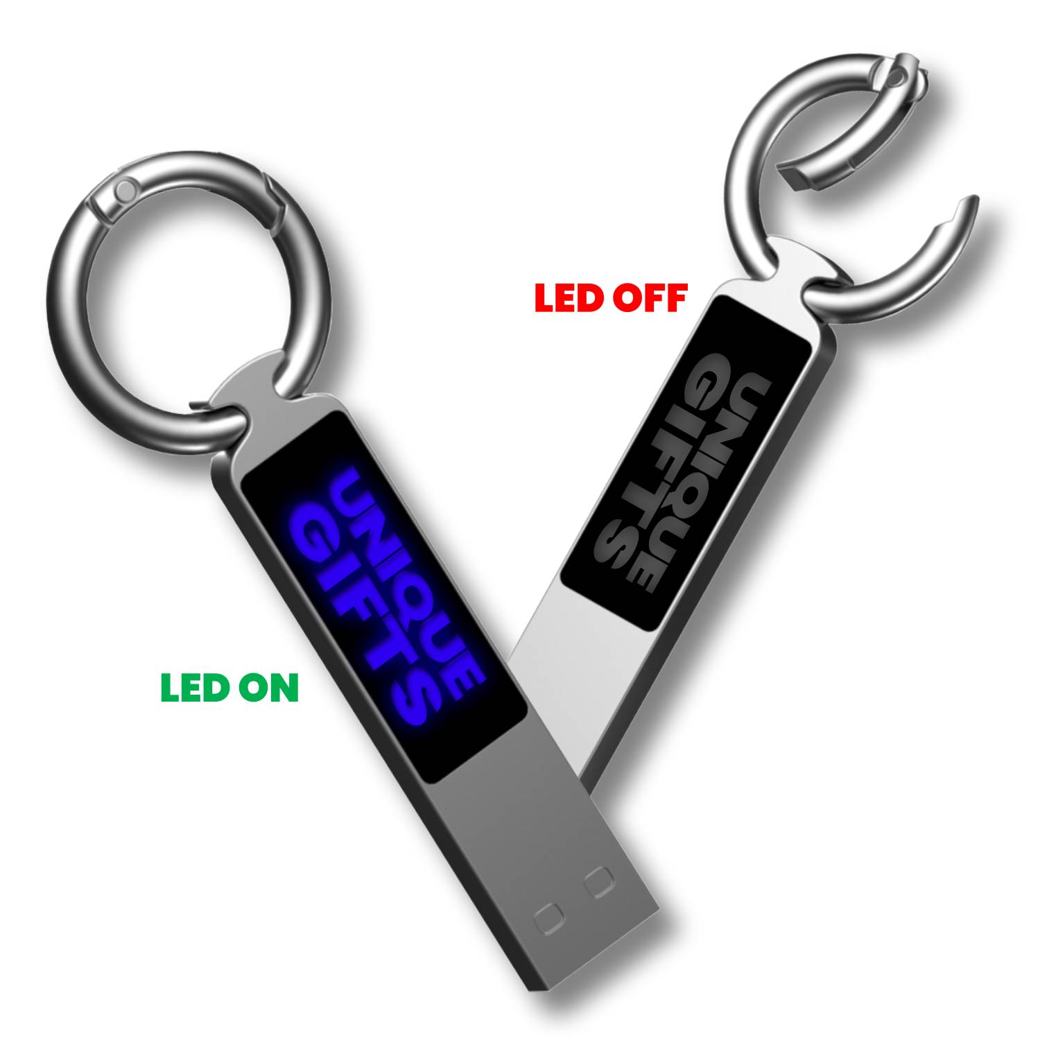 Elegantní kovový flash disk s podsvíceným LED logem, které se rozsvítí při připojení k zařízení. Kompaktní tělo s očkem na kroužek z něj dělá stylový i praktický doplněk na klíče, batoh nebo peněženku. Dostupný s rozhraním USB 2.0 nebo USB 3.0 a kapacitou až 512 GB. Ideální pro přenos dokumentů, prezentací i multimédií. Odolné provedení v kombinaci s výrazným světelným brandingem z něj dělá výjimečný firemní dárek, který zaujme na první pohled.
